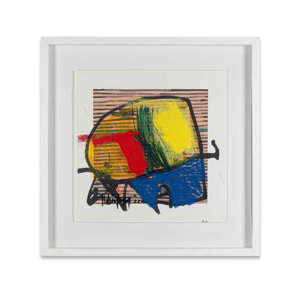 Thabiso Phepeng delves into a language of abstraction: drips strokes, splatters, shapes and lines are echoed into richly textured visual fields. Vibrant colors and lines overlap into cascading swirls. Thabiso Phepeng is insistent about his choice in expressing himself through abstraction, (with some works incorporating text) rather than have to represent someone’s idea of Blackness. “I have come across people who look at my work and say it doesn’t look Black”. He does not want to be characterized as “African artist” for he feels it’s ghettoizing. “Art is a universal language that unites us all, it matters not where you are from. Your art stands by itself”, he says during our conversation. For Phepeng the whole notion of national identity as an artistic category is limiting. He understands the nature of accepted context versus actual influence. His art expresses an individual vision without sloganeering. Phepeng rejects labels, and ‘identity politics’ and celebrates artistic individuality without the albatross of categorization.